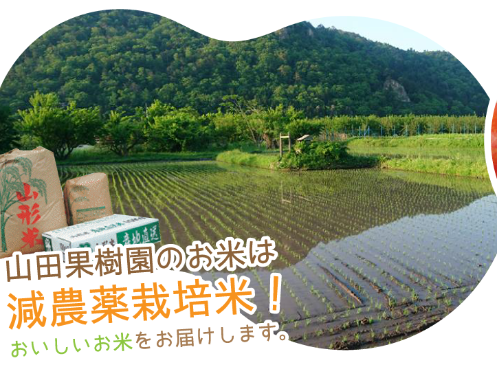 山田果樹園は、松尾芭蕉で有名な山形市の山寺周辺に位置し、有機・木酢液栽培にこだわって育てた、さくらんぼ・ぶどうのもぎ取り体験や、さくらんぼ・ぶどう・ラフランス・りんご・お米の産地直送販売を行なっています。 より甘くて美味しいくだものを多くの方に味わって頂くために、天然ミネラル成分の有機肥料を積極的に使用した土づくりにこだわり、ひとつひとつの作業に愛情をこめて育てております。